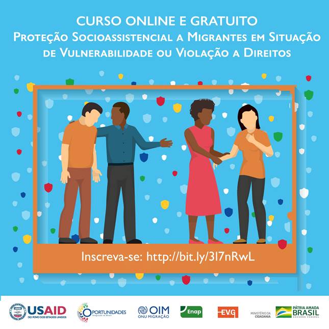 Conheça a novas ofertas de capacitação desenvolvidas pela OIM em parceria com a ENAP, por meio do Oportunidades, com apoio financeiro do USAID. São três cursos que já estão disponíveis na plataforma da Escola Virtual de Governo para quem se interessar em desenvolver seus conhecimentos.