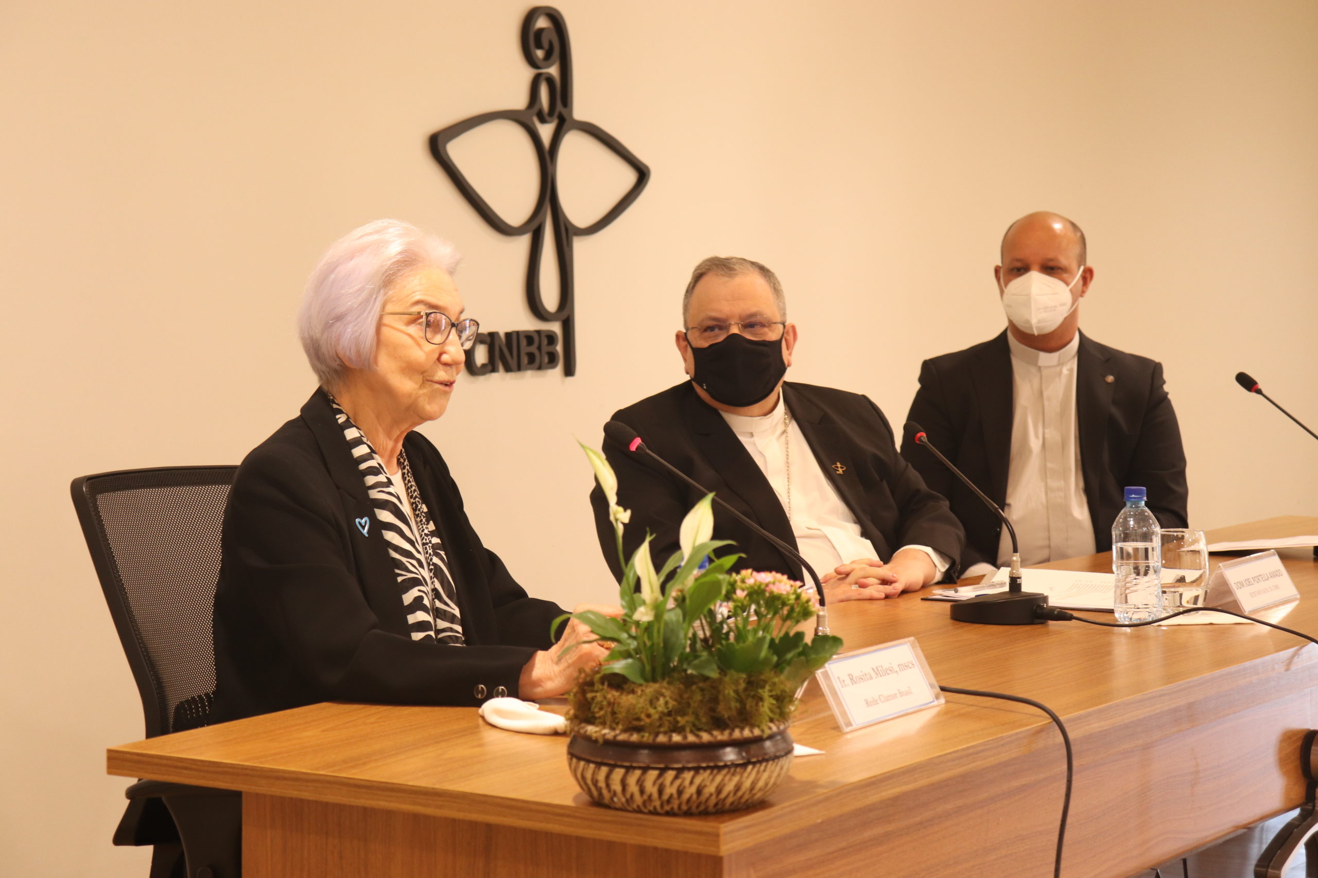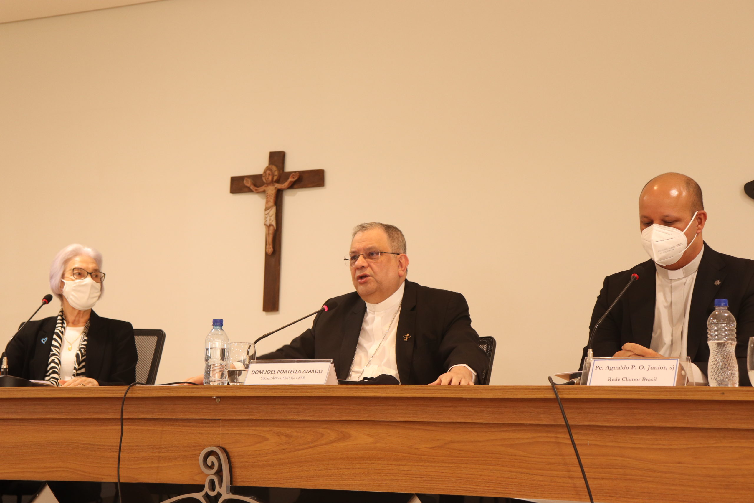 Dom Joel Portella Amado, secretário-geral da CNBB, fez o discurso de acolhida da solenidade, apresentando as motivações para essa celebração. “Queremos viver um momento significativo para a Igreja no Brasil. Essa assinatura quer ser muitas coisas hoje. Primeiro, a nossa celebração do dia de Santa Dulce dos Pobres, voltando-nos para algumas situações de vulnerabilidade, como nossa querida Ir. Dulce voltou-se a vida inteira. Queremos celebrar também o dia mundial humanitário, a ocorrer no dia 19 de agosto, conforme indicação da ONU desde 2008. E por fim queremos celebrar ação de graças pela caminhada da Ação Emergencial “É tempo de cuidar”. É também esse um momento de pedido, de clamor. Essa palavra, clamor, mistura-se em nossa vida com nossas ações de graças. Nosso tempo é de muitos clamores. Há nesta assinatura hoje o clamor dos migrantes, dos refugiados, das vítimas do tráfico humano. Há o clamor dos outros pobres e marginalizados, dos famintos, dos vulnerabilizados de tantas outras formas. Há o clamor das famílias, um clamor destacado ainda mais porque nós vivemos nesses dias a semana da família. Há um clamor por vacina, por paz, esperança. Há um clamor do planeta, nossa casa comum tão agredida. Há um clamor da democracia agredida por interesses distintos e distantes do bem-comum”, reforçou Dom Joel.