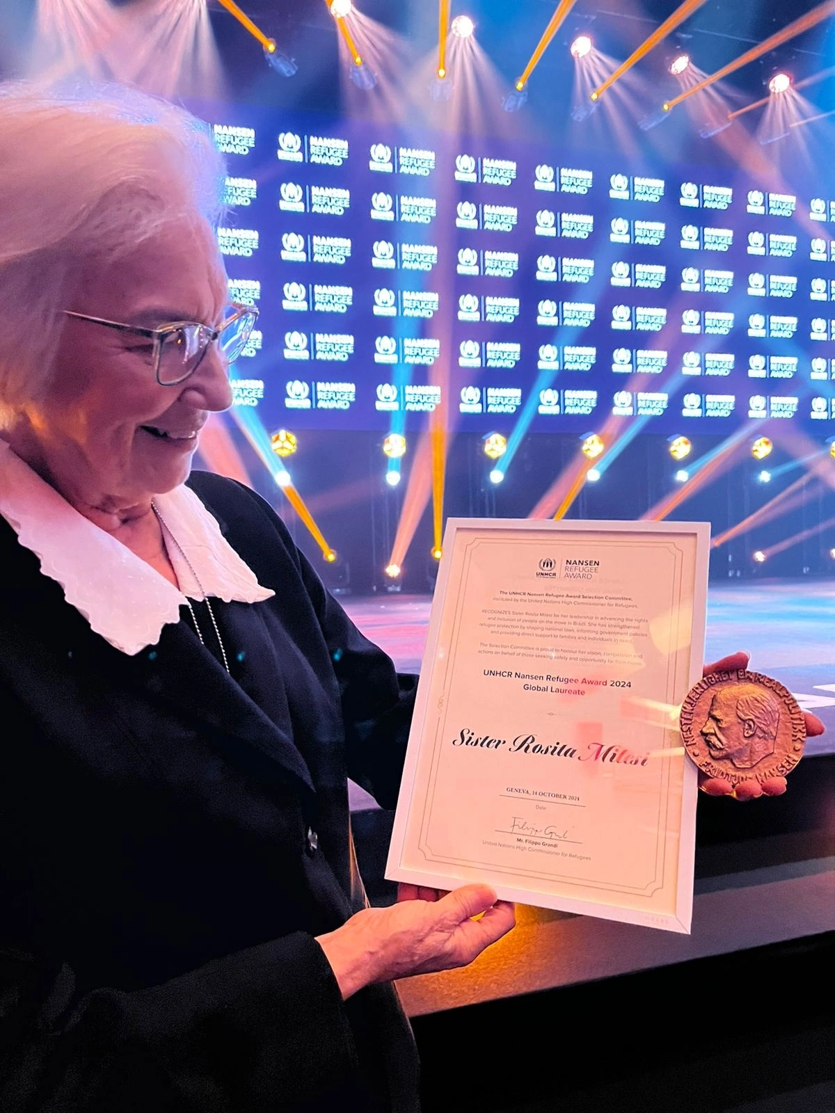 A brasileira Irmã Rosita Milesi recebeu reconhecimento global no Prêmio Nansen do ACNUR 2024, uma das mais tradicionais e maiores honrarias internacionais, pela atuação extraordinária na defesa dos direitos das pessoas refugiadas. Ao apresentar a grande vencedora da cerimônia, o Alto Comissário do ACNUR, Filippo Grandi reforçou a admiração de longa data dos trabalhadores humanitários por Irmã Rosita.