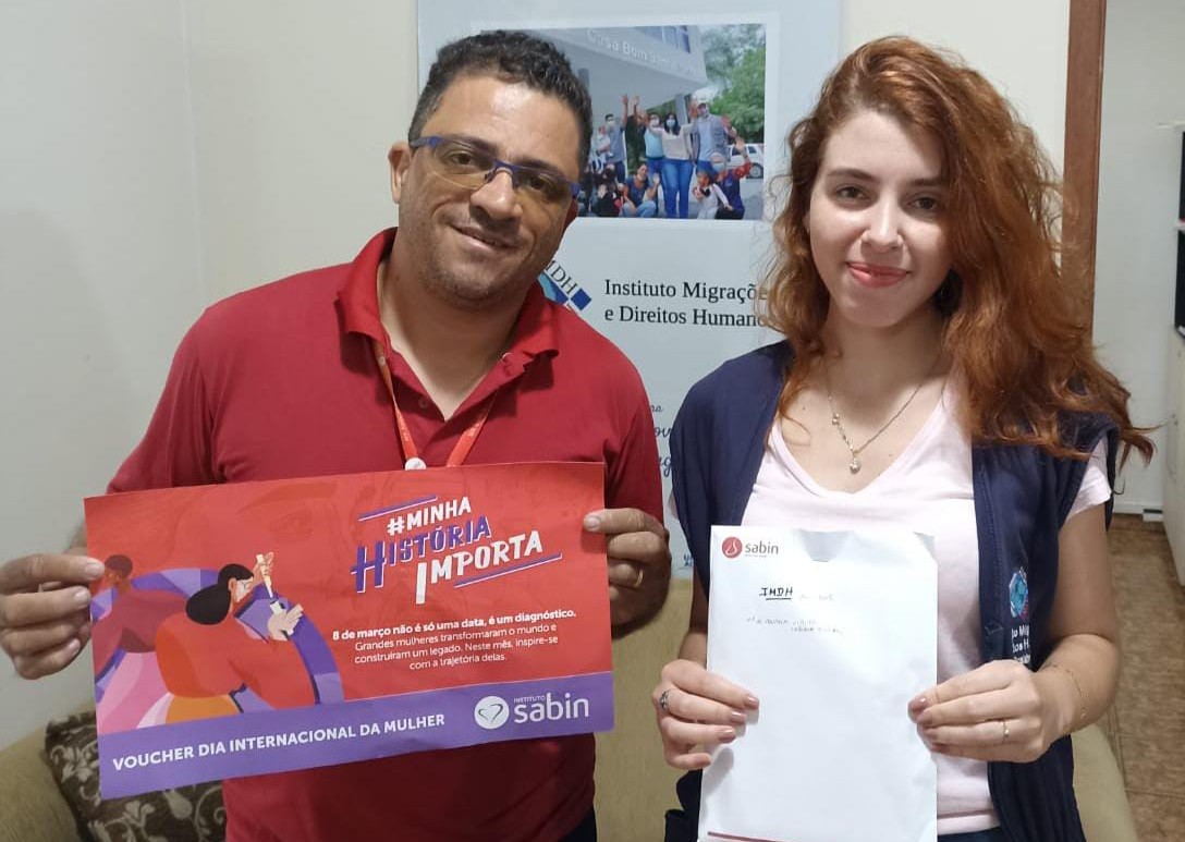 Uma ação conjunta entre Instituto Migrações e Direitos Humanos (IMDH)/Fundação Scalabriniana e o Instituto Sabin marcou a celebração do Dia Internacional da Mulher, realizada durante o mês de março. Cinquenta mulheres migrantes e refugiadas receberam vouchers para a realização gratuita de exames laboratoriais (Hemograma, Glicose, Lipidograma, Creatinina, Tireoestimulante e outros) em qualquer laboratório da Rede Sabin no Distrito Federal ou entorno.