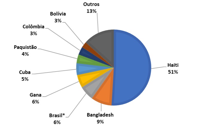 Esta redução é também um reflexo da decisão da Embaixada do Haiti no Brasil de suspender, em 2020, a intermediação de instituições sociais no pedidos de emissão e renovação do passaporte haitiano.
