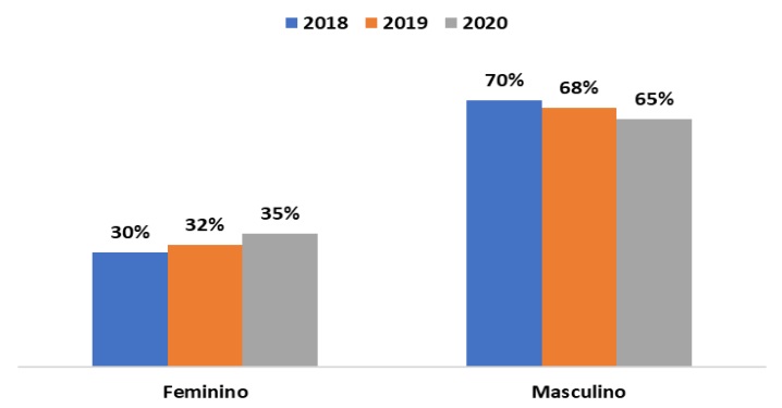 Ao desagregar os dados por gênero, observa-se a partir de 2018, um significativo aumento de atendimentos à população feminina.