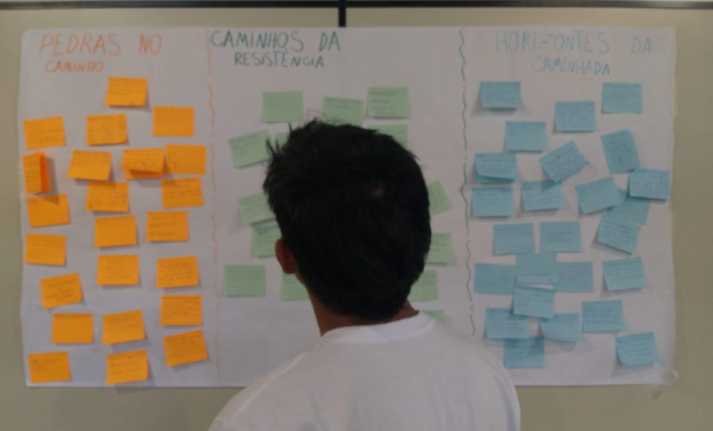 A oficina constitui uma jornada pedagógica que incorpora a sabedoria e a trajetória humanitária de Irmã Rosita Milesi, ganhadora do Prêmio Nansen em 2024, através do lema inspirador “se faz o caminho caminhando”. Estruturada como metáfora de caminhada coletiva, a oficina guia participantes por sete etapas progressivas e cuidadosamente sequenciadas: chegada acolhedora, inspiração histórica, construção de conhecimento, sabedoria experiencial, pausa reflexiva, ação comunitária e retorno transformado. Cada etapa cria espaço integrado onde dimensões pessoais, comunitárias e políticas da crise climática são simultaneamente reconhecidas, mapeadas e enfrentadas através de dinâmicas participativas que valorizam tanto o saber científico quanto os conhecimentos territoriais e a criatividade das comunidades.